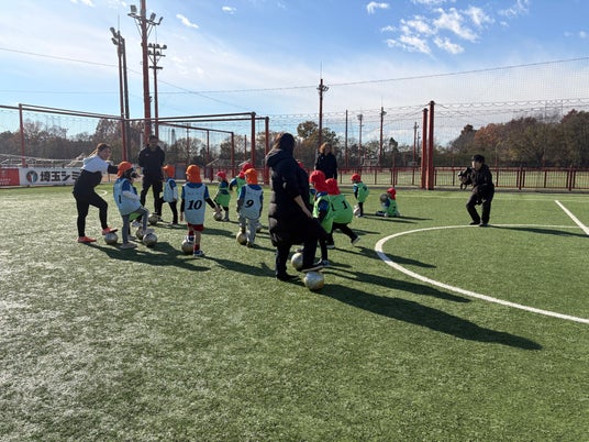 2025年12月5日(金)、5歳児「ひまわり組」の子どもたちが、さいたま市の**レッズランド**で開催されたサッカー教室に参加しました。