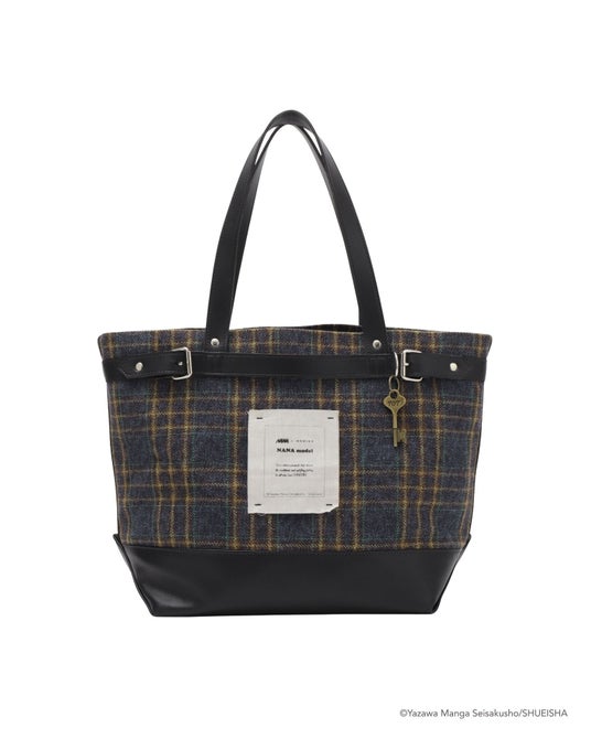 ナナとハチが暮らした707号室の鍵を、さりげないチャームとして取り入れたトートバッグ。キャラクターを強調しすぎず、日常に自然と溶け込むデザインに仕上げました。チェック生地とレザーのコンビネーションは、ADDIXYらしい構築的なバランスを表現。上部のベルトディテールが、シンプルな中にアクセントとして効いています。 容量があり、普段使いとしての実用性も兼ね備えたアイテムです。