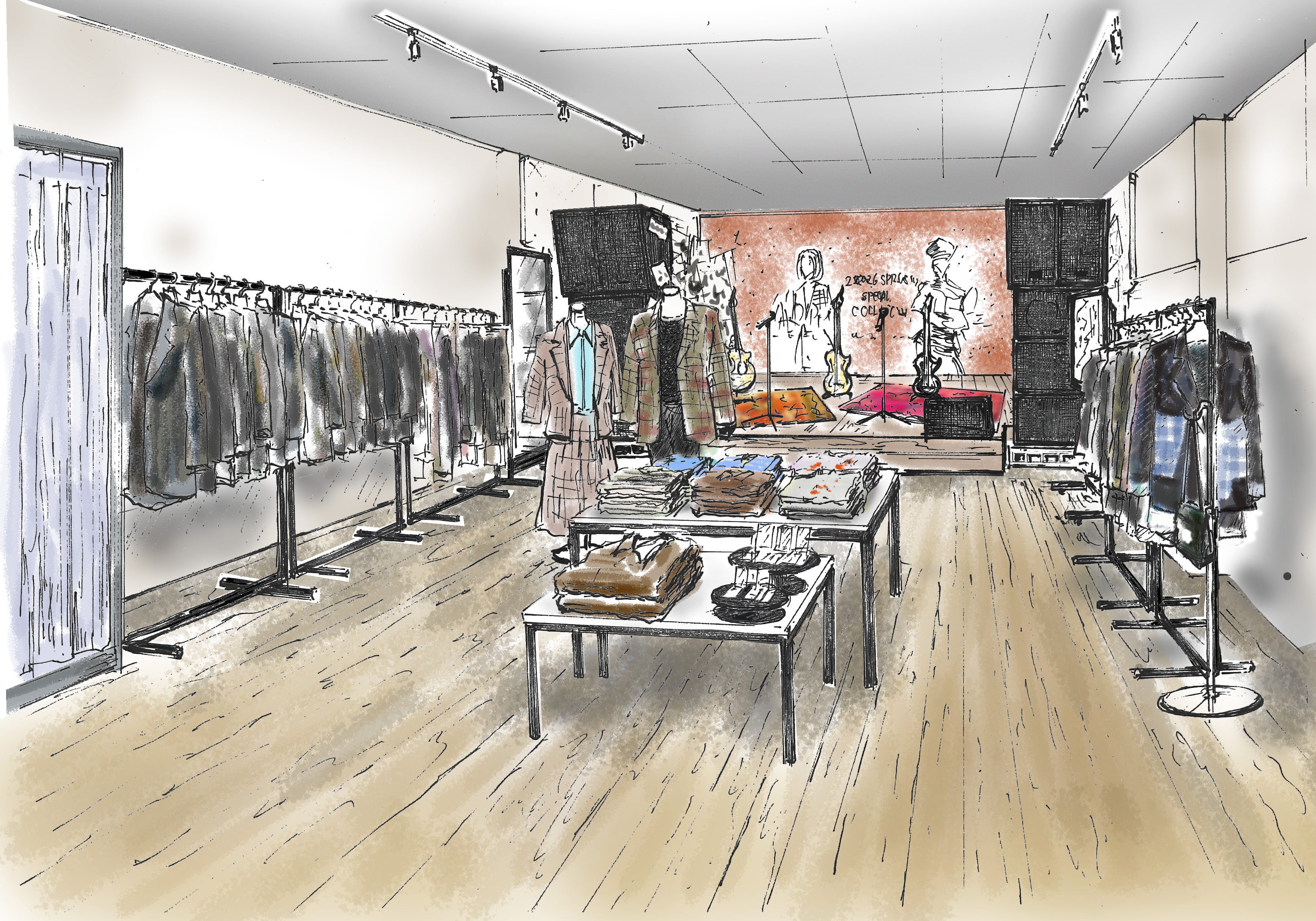 東京開催の会場には、作中で使われている楽器などをリアルに再現した「BLACK STONES(ブラスト)」のリハーサルスタジオを模した特設フォトスポットを設置。ご来場のお客様は、気になるコラボレーション商品を試着し、そのままバンドセットの中に立って写真撮影を行っていただくことが可能です。「ADDIXY」と「NANA」が織りなすクールな世界観の中で、まるで作中の登場人物になったかのような没入体験をお楽しみください。