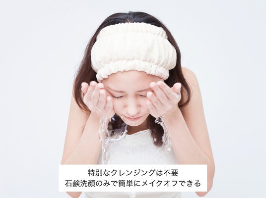 石油系成分不使用のため特別なクレンジングは不要で、通常の石鹸洗顔のみで簡単に、お肌への負担を抑えてメイクオフできます。