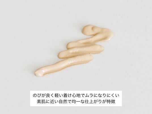 天然由来の成分でありながら、シミやソバカス、毛穴などをしっかりカバーできます。色は1種類のみですが、量を調整することで自分の肌の色になじませることが可能。のびが良く軽い着け心地なので、少量を薄く塗る場合でも重ね塗りする場合でもムラになりにくく、素肌に近い自然で均一な仕上がりにすることができます。