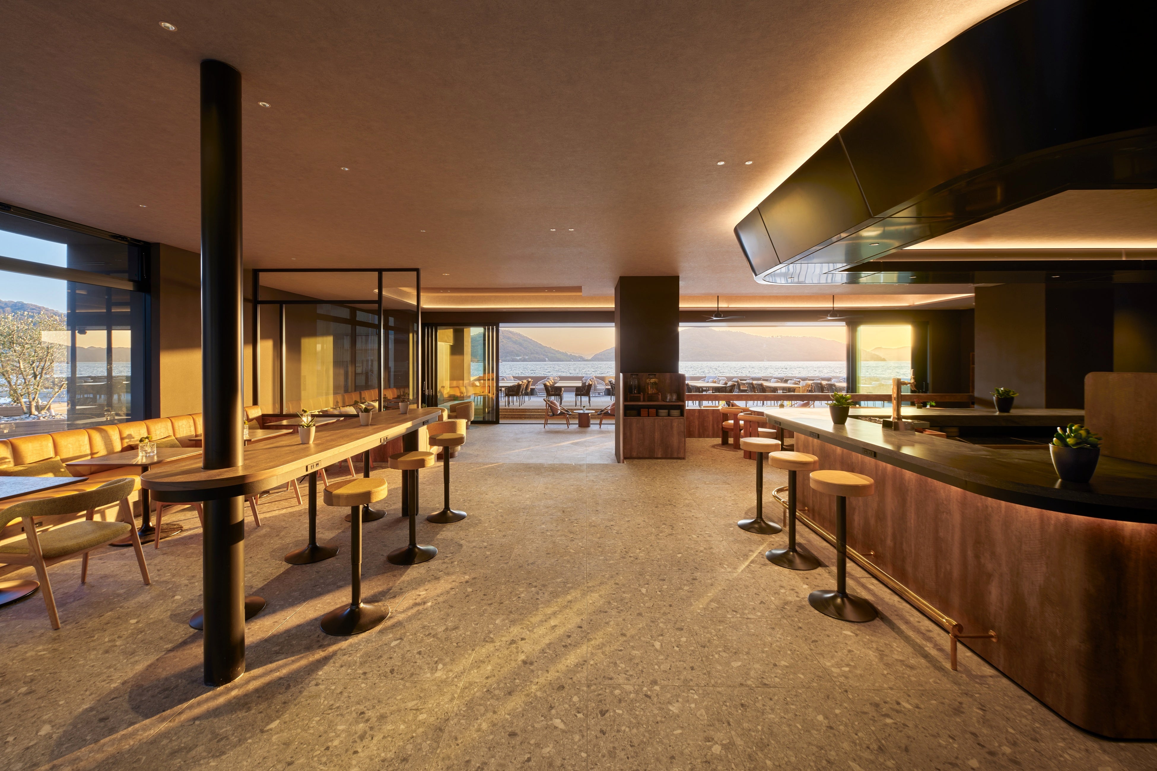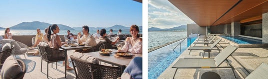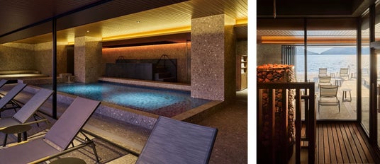 最大20名を収容できる大型のフィンランド式サウナには、オートロウリュ機能を備え、水温15度・深さ1.2mの水風呂のほか、外気浴スペースや、瀬戸内の海や島々と一体になるようなインフィニティプールをご用意。また、多様な温度で身体を温める屋内風呂やジャグジーなど、すべての施設をオーシャンビューで設計しており、天候に左右されることなく、一年を通してご利用いただけます。