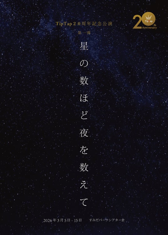 Cue Company主催、TipTap20周年記念公演 第一弾『星の数ほど夜を数えて』が2026年3月5日 (木) ~ 2026年3月15日 (日)にすみだパークシアター倉(東京都墨田区横川1-1-10)にて上演されます。