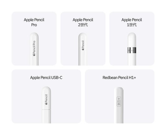 Q-Flex(TM)ペンシルチップは全てのApple PencilおよびRedbean Pencil H1+互換します。(*2026年1月時点)