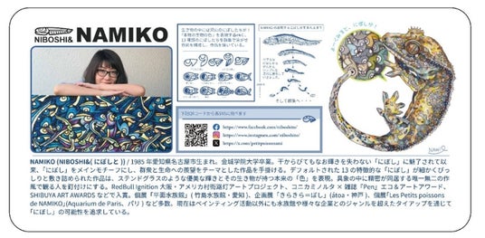 愛知県出身。干からびてもなお輝きを失わない「にぼし」に魅了されて以来、日々「にぼし」を主題モチーフにし、作品制作をしている。ペインティング活動では、群集と生命への羨望をテーマにした作品を描き、Red Bull Ignition大阪・アメリカ村街路灯アートプロジェクト、コニカミノルタ雑誌『Pen』エコ&アートアワード、SHIBUYA ART AWARDSなどで入賞している。