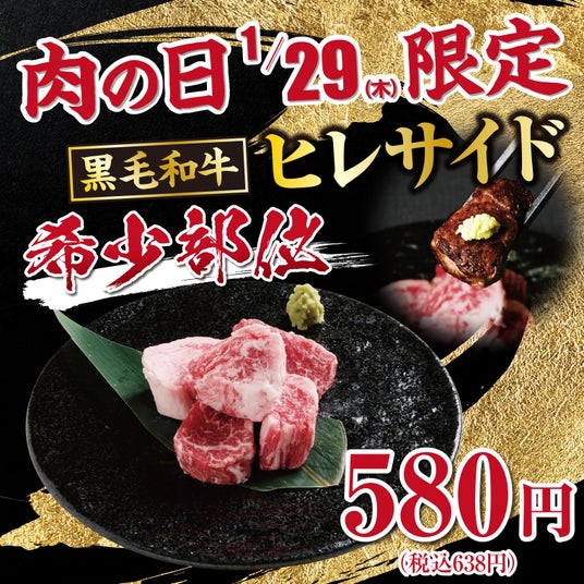 【あみやき亭】肉の日・特別還元祭を開催!1月29日は黒毛和牛「ヒレサイド」が580円。2月は日本三大和牛「近江牛」を“お値段据え置き”&“500円”で大放出!
