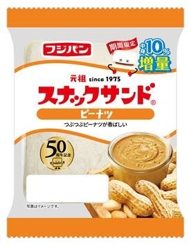 フジパン株式会社(愛知県名古屋市)は、携帯サンドイッチの元祖「スナックサンド」が、2025年9月15日に発売50周年を迎えました。これを記念し、2026年2月1日(日)より、スナックサンド定番商品であり、甘系No.1人気の『スナックサンド ピーナツ』のピーナツクリームを期間限定で10%増量いたします。
