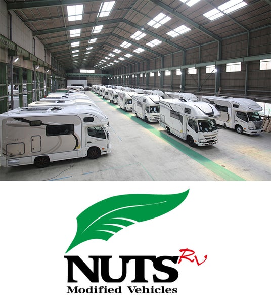 ナッツ RV は国内シェア No.1 のキャンピングカー専門メーカーです。福岡本社をはじめ、国内3工場、海外2工場で年間1,200台ものキャンピングカーを生産しています。また、国内10店舗でのアフターフォロー体制(金沢にも店舗あり)を整えています。