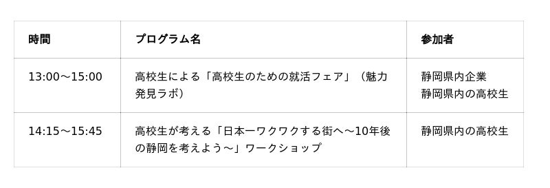 静岡県内の高校生約80名が参加する、協賛企業と連携した就活フェアです。高校生は、事前にパーソルグループ監修のキャリア教育プログラムを受講し、協賛企業への職場体験・ヒアリングを通じて企業の魅力を探求。『パーソルDAY』当日は、7日は協賛企業によるブース出展、8日は高校生によるブース出展と企業の魅力紹介プレゼンテーションを実施します。