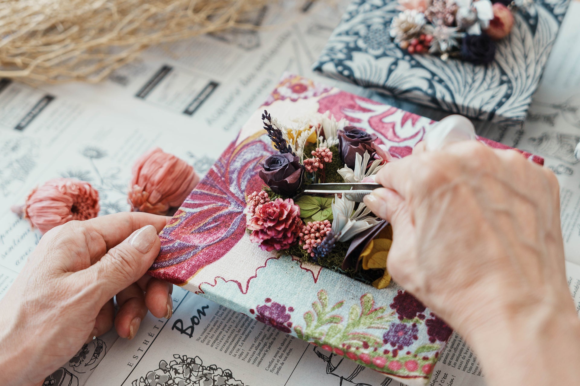花と器、木工・手芸・キャンドルづくりなどの手仕事を通して暮らしを楽しむ体験型アトリエを併設。
