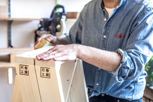 石巻工房は、2011 年の東日本大震災をきっかけに、宮城県石巻市で生まれた家具ブランド。震災直後に復旧・復興のために使える「地 域のものづくりの場」としてスタートし、DIYの支援活動を行うほか、施設の復旧やバーなどの改修を実施。再び立ち上がるまちの姿を皆 で考えるための場づくりを行った。初期の活動のハイライトには、屋外映画上映会のために地元の高校生と協働したベンチ製作や、同年 のアメリカのハーマンミラーによる被災地支援プログラムを通じた家具づくりワークショップでの協働などがある。 「手づくり」に日本国内外の実力あるデザイナーとデザインの力を加え、2014年に石巻工房ブランドを会社化した石巻工房は、石巻のスタッ フとともに地域内外で販売するための魅力ある製品をラインナップしている。2024 年にはカリモク家具と業務提携し、カリモク家具で製作 する「Maker Pack」と石巻で製作する「The Originals」の2つのシリーズを展開。石巻を起点にしながらも、「メイド イン ローカル」とい う名のもと、世界各地の環境や文脈に応じたものづくりやボランティアを行うネットワークの起点としても活動している。
