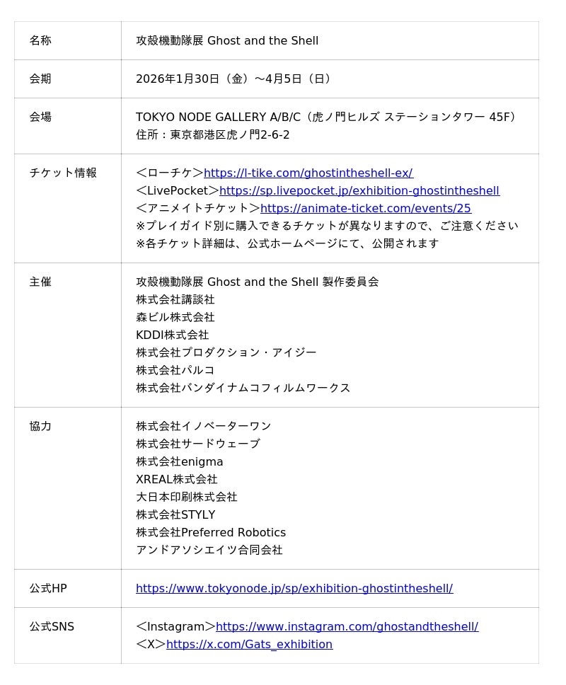 イベント名:攻殻機動隊展 Ghost and the Shell