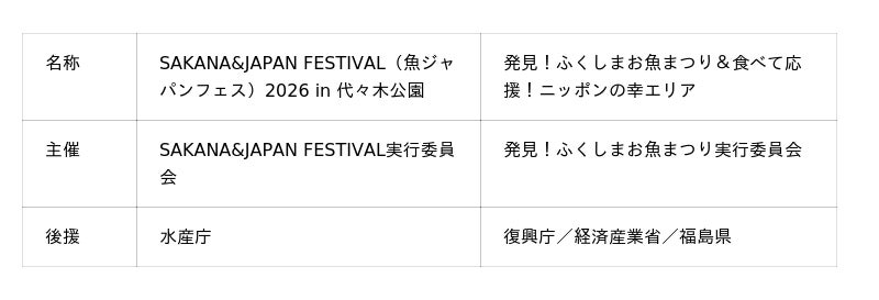 累計来場者270万人 日本最大級の魚介グルメフェスSAKANA&JAPAN FESTIVAL魚ジャパンフェス2026 in 代々木公園