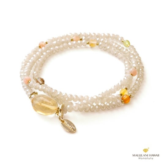 豊かさを呼び込む石を華やかに紡いだ、上品な2連ブレスレット。