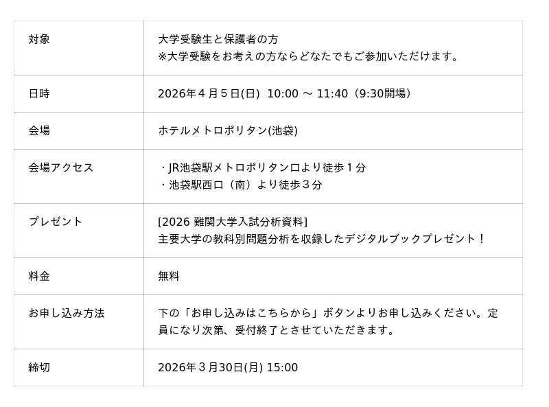 【大学受験生対象/参加無料】2026年度難関大学入試をいち早く分析!「難関大学入試 最新分析報告会 2026」を開催します。