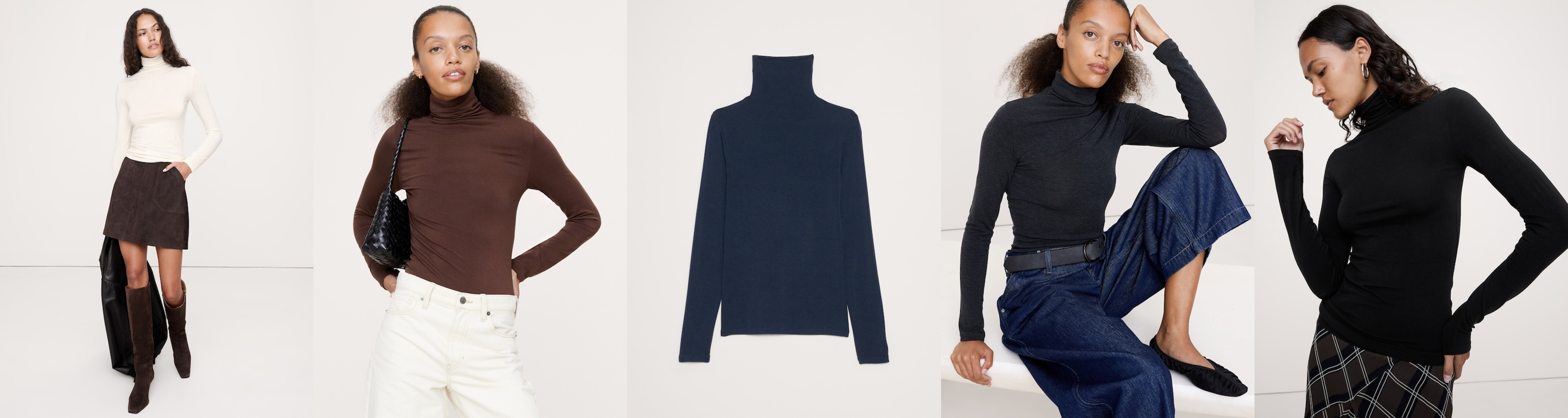 リュクス ウールブレンド タートルネックTシャツ 12,000円 (左から:ホワイト/ブラウン/ ネイビー/ チャコールグレー/ ブラック)