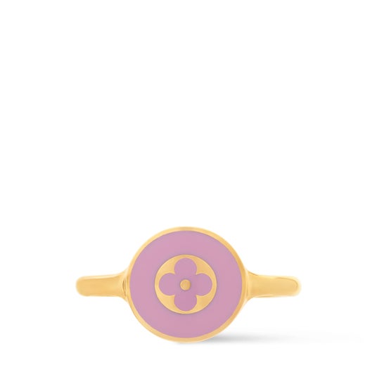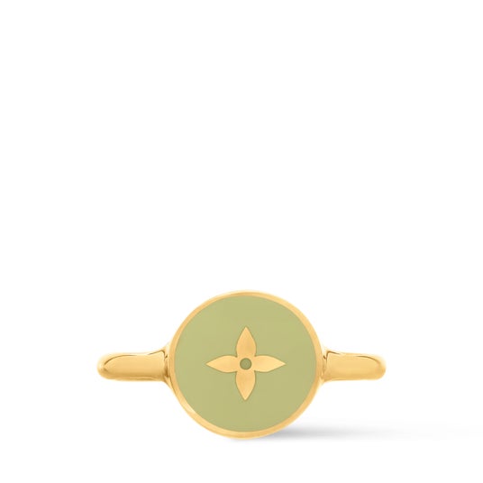 光沢感のあるゴールドカラーのメタルで仕上げた「リング・LV コンフェッティ」。 陽気で祝祭ムード溢れる雰囲気の中で、アイコニックなモノグラム・シグネチャーにオマージュを捧げるアイテムです。 カラフルなエナメルを施したパーツに、繊細なモノグラム・モチーフをあしらった遊び心溢れるデザイン。