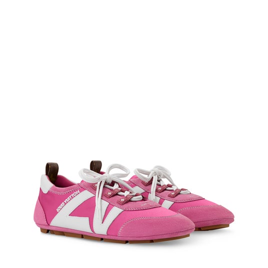 テクニカルサテンにスエードレザーを組み合わせた「LV スニーカリーナ」。スニーカーの機能性とバレリーナのそれぞれの魅力を融合させた、トレンド感溢れる一足です。サケット構造を取入れることで、軽やかさと柔軟性を実現しました。シューレースのループにあしらわれたモノグラム・フラワーや、サイドを彩るLV イニシャルなどのメゾンならではのシグネチャーが、アッパーを引き立てます。