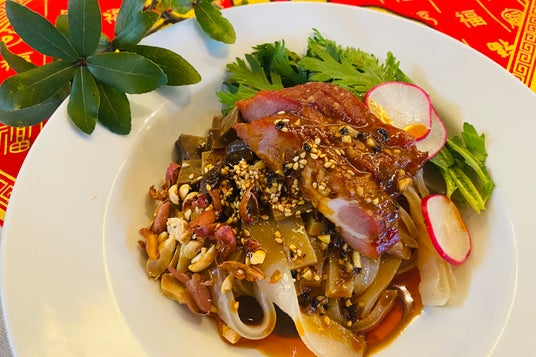 千葉県産小麦粉とどんぐり粉のもちもち涼皮 イノシシ広東叉焼のせ中國料理kujikuji