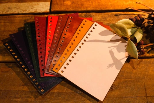 (イノシシ革ほか)天然の表情をもつ本革は、同じ革でもシワや色ムラが異なり、使い込むほどに経年変化で表情が変わります。世界で一つだけのハンドメイドの本革ノートづくりワークショップです。