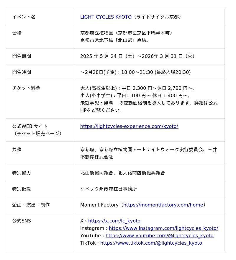 時間:「LIGHT CYCLES KYOTO」の開催時間に準じて実施