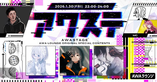 AWA株式会社(本社:東京都港区、代表取締役CEO:冨樫晃己)が運営する、サブスクリプション型(定額制)音楽ストリーミングサービス「AWA(アワ)」は、2026年1月30日(金) 22:00より、無料で誰でも参加できるオンライン空間「ラウンジ」で、ネットシーンを中心とした注目アーティストなどを毎回ゲストに招き、有識者であるMCとともにシーンの次のステージを切り開く番組「AWAステージ(通称:アワステ)」の第67回を開催いたします。