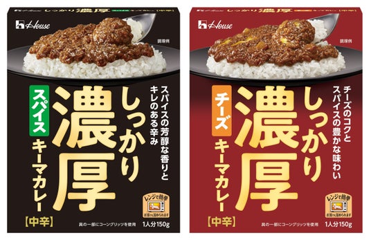 ハウス食品株式会社は、「しっかり濃厚スパイスキーマカレー」「しっかり濃厚チーズキーマカレー」を、2026年2月9日(月)から全国のスーパーなどで発売します。挽き肉のしっかりとした食感が楽しめる、肉や油の旨みににんにくの深いコクが重なった濃厚で食べ応えのあるキーマカレーを、500Wで1分20秒箱ごとレンジ調理するだけで手軽に楽しめます。調理時間の確保が難しい日でも簡単に満足感を味わえるレトルトカレーです。内容量は150g、オープン価格(税別参考小売価格238円)。
