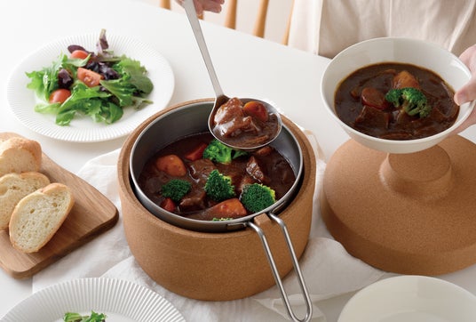 コルクの保温力で70℃を約2 時間キープ!火を消しても美味しく煮込める保温調理鍋