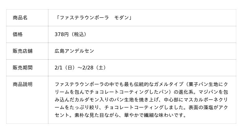 そのほか、アンデルセングループでは、さまざまなファステラウンボーラを発売します。お近くの店舗でぜひお探しください。【広島アンデルセン】販売期間:2/1(日)~2/28(土)