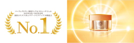 新日本製薬 株式会社(本社:福岡市、代表取締役社長CEO:後藤孝洋)は、シンプルスキンケアを提案するブランド『パーフェクトワン』の主力商品「パーフェクトワン 薬用リンクルストレッチジェル」が国内コスメ(スキンケア・メイクアップ)市場において、2024年11月~2025年10月累計売上No.1※1を獲得したことをお知らせいたします。