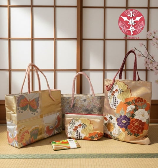 小梅や <帯バッグ>シンガポール初出店使われなくなった帯を丁寧にバッグやベルトに変身させ、現代のライフスタイルに合った形で新しい命を吹き込んでいます。着物の似合うまち川越を拠点に、高い技術を持った地域のお針子さんと、伝統文化の継承に貢献しています。