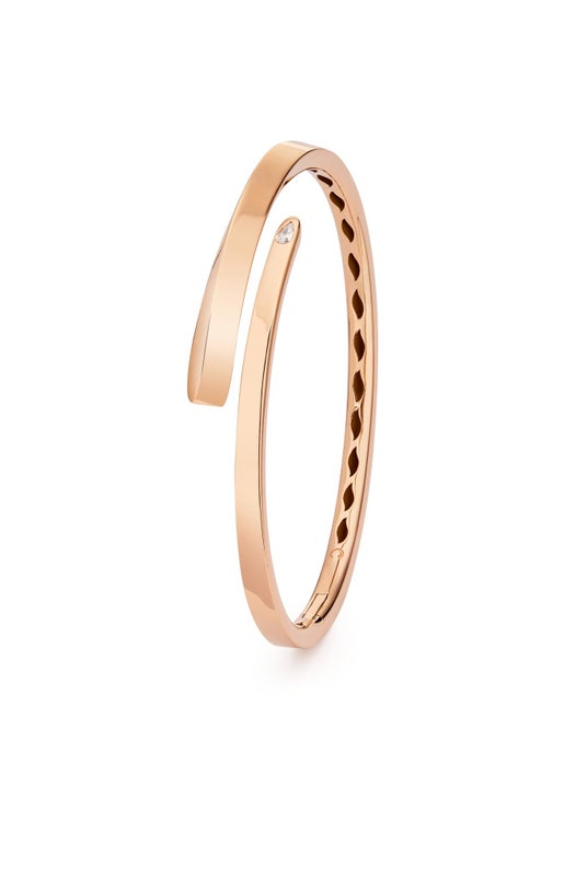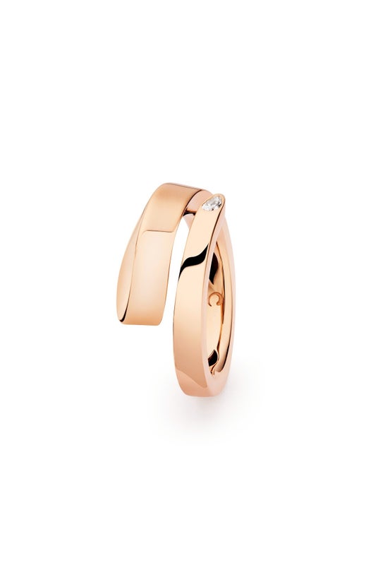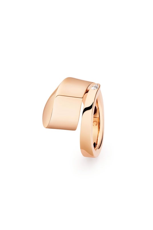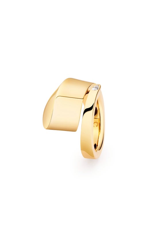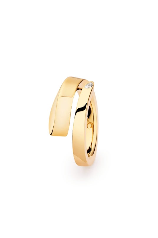 ゴールドで描かれるクリーンなライン。フォルムの完成度を際立たせるために選び抜かれた、ひと粒のダイヤモンド。