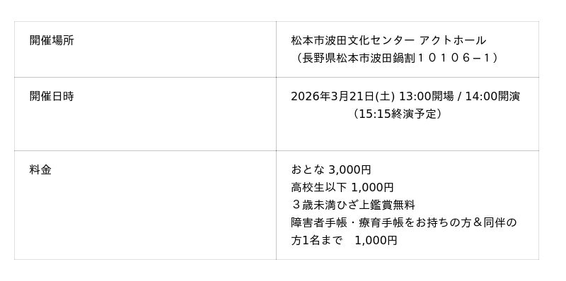 支援:信州アーツカウンシル(一般財団法人長野県文化振興事業団)