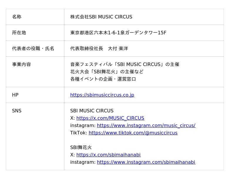 株式会社SBI MUSIC CIRCUS pr_sbimc@sbimusiccircus.co.jp 03-6850-7891