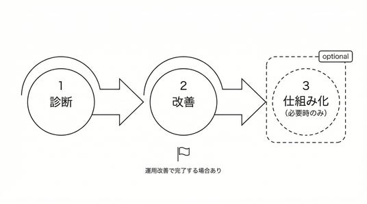 ・診断 → 改善 →(必要時のみ)仕組み化(PoCから段階導入)