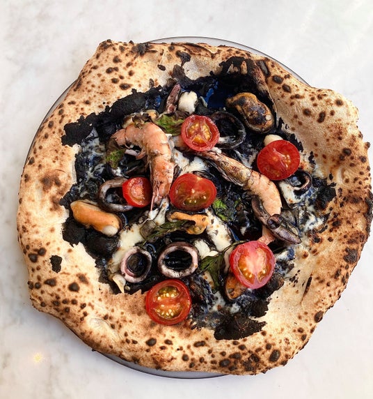 10.イカスミと贅沢魚介ピザ