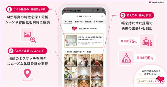 【結婚準備クチコミ情報サイト「Wedding Park」】好みの雰囲気を直感的に選べる AIアシスタント「フォト探索」をリリース ~独自のプロンプトによる画像解析で、新たな結婚式場との出会いを創出~