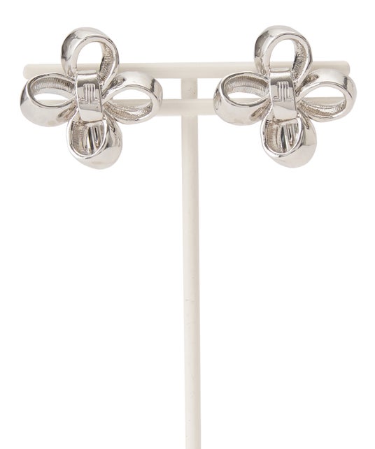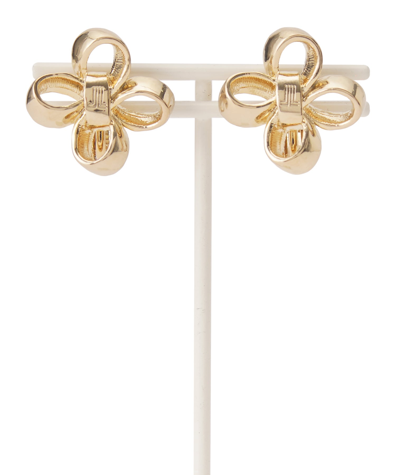 リボンを花のように結んだイメージで表現したフラワーモチーフのブローチ。艶やかなメタルの輝きが美しく、リボンの立体感が大人っぽい印象を演出します。同デザインのイヤリング(ピアス)も展開します。