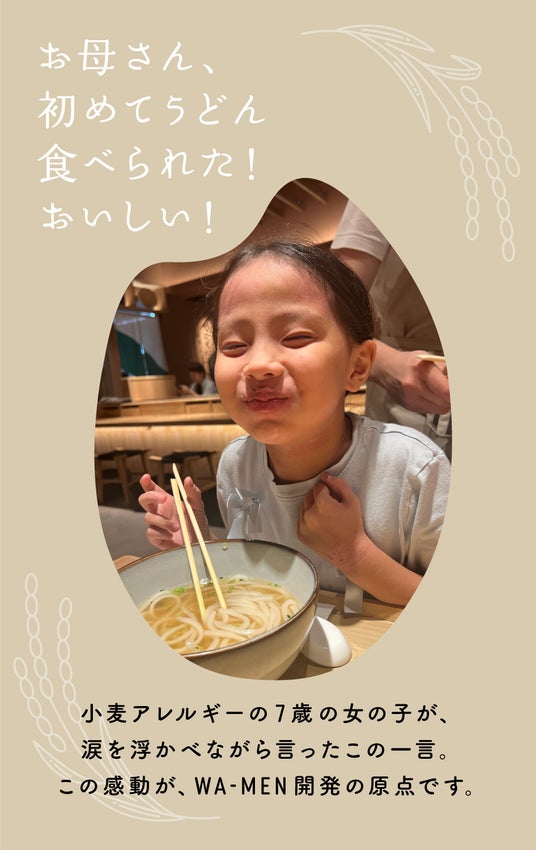 その歩みの中で、かつて自身が原因不明の不調(グルテン不耐性)に悩まされた当事者としての経験と、提供した麺を食べて涙を流したアレルギー児の少女との出会いが重なり合いました。