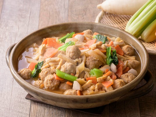 (左)小麦の名産地である群馬のおっきりこみを使用した、野菜のやさしいうまみが重なり合う"群馬の郷土料理 おっきりこみ"【前橋限定】