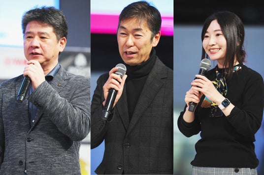 (左から)スペシャル審査員として、ヤマハ発動機株式会社 ロボティクス事業部長の小林一裕氏、株式会社Cygames CTO室 テクニカルディレクターの永谷真澄氏、Microsoft Cloud Developer Advocateの千代田まどか氏