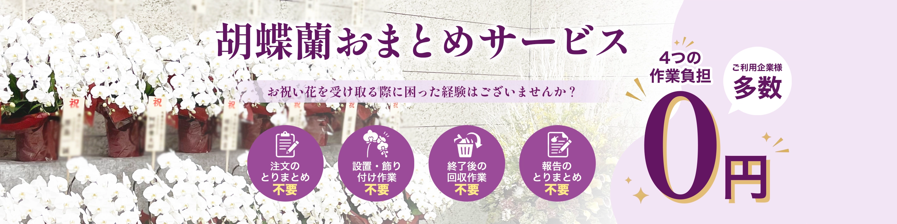 黒臼洋蘭園が運営するオンラインショップ「胡蝶蘭専門店らんや」では、3本立・5本立をはじめとした高品質な胡蝶蘭を全国へお届けしています。立て札・ラッピング・日時指定配送など、贈答に欠かせないサービスを標準対応し、法人向けにはおまとめ注文専用サービスも用意。初めての方でも安心してご利用いただけます。