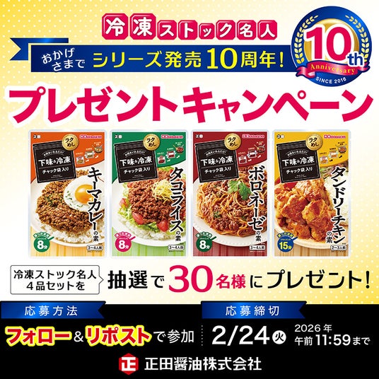 「冷凍ストック名人」シリーズが発売10周年を迎えます。日頃よりご愛顧いただいている皆さまへ、感謝の気持ちを込めてお届けするキャンペーンや記念コンテンツを2026年1月29日より順次実施いたします。