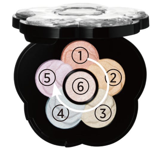 ハイライトカラー5色と、グリッターカラー1色で構成。単色もしくは混ぜて、頬などの高い部分や、顔全体に薄く重ねるなど、様々な入れ方でメイクに華やかさをプラスします。