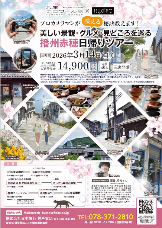 この度、株式会社フェリシモとのコラボレーション企画として、プロカメラマンが「映える」秘訣を教える播州赤穂日帰りバスツアーを実施します。
