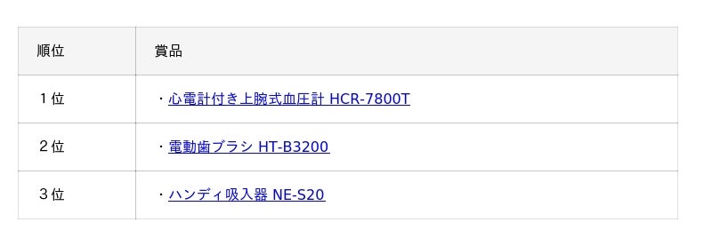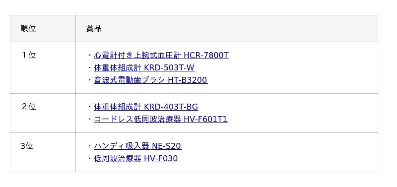 このほか、4位~8位入賞者にも、賞品として、ヘルスケア商品を贈呈いたします。