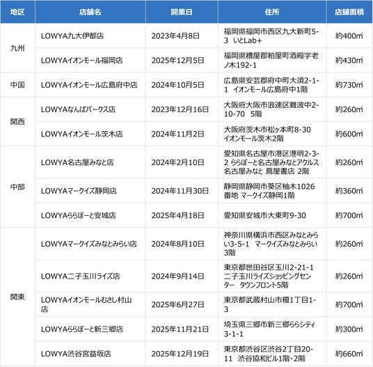 株式会社ベガコーポレーション(本社:福岡県福岡市博多区、代表取締役社長:浮城 智和、証券コード:3542、URL:https://www.vega-c.com 以下:ベガコーポレーション)が運営する、家具・インテリアブランド「LOWYA」(呼称:ロウヤ、URL:https://www.low-ya.com/)は、2026年にグランツリー武蔵小杉(神奈川県川崎市)、イオンモール橿原(奈良県橿原市)、イオンモール筑紫野(福岡県筑紫野市)に実店舗をオープンすることを発表いたします。