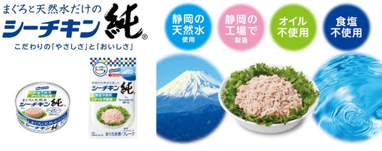 まぐろと天然水だけ、食塩・オイル不使用の“超”シンプルなシーチキンがメインユーザーも使いやすい食感に改良し、1食分のプチサイズで登場!