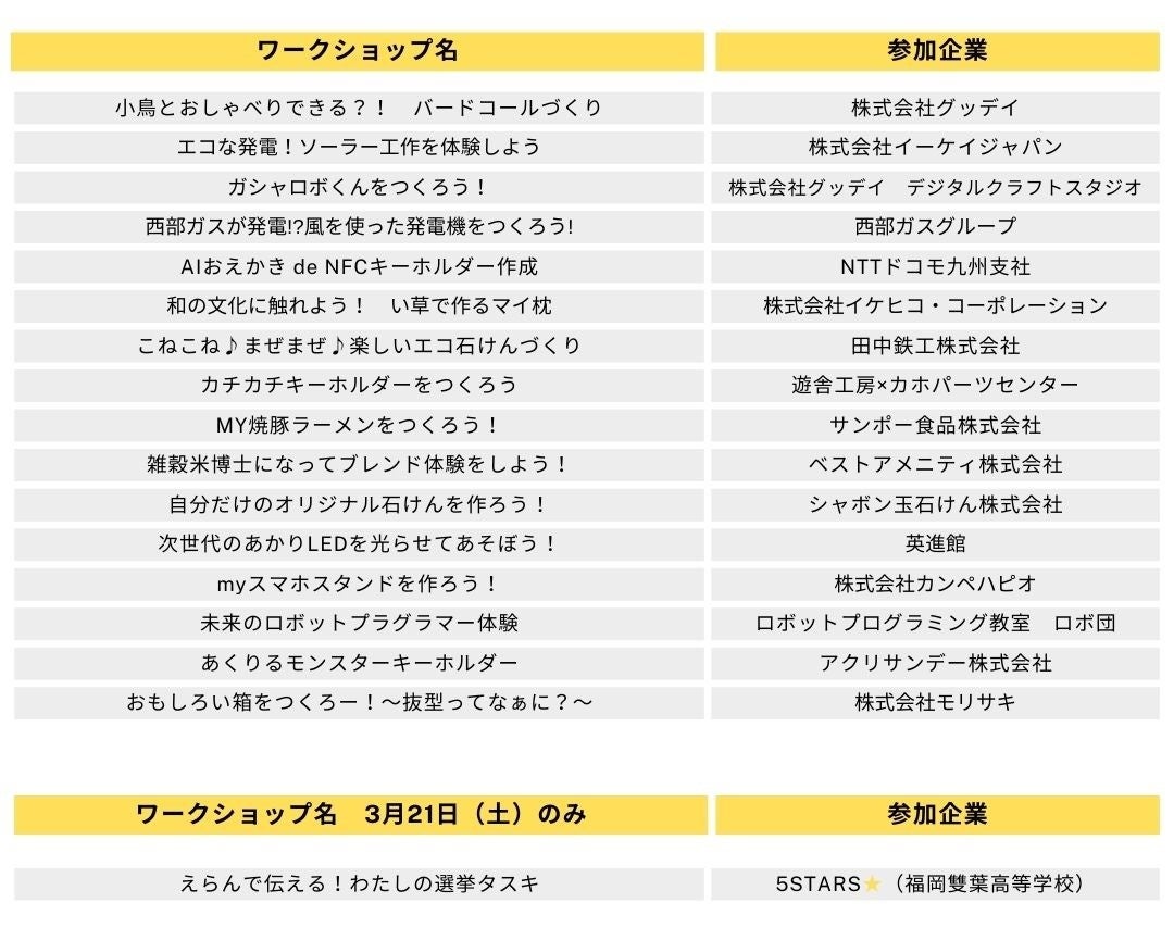 北部九州・山口等に60店舗以上のホームセンター「グッデイ」を運営する株式会社グッデイ (代表:柳瀬隆志 本社:福岡市中央区) は、全国各地で開催され最大10万人の来場実績を誇る国内最大級のこども向けワークショップの祭典、福岡では8回目の開催となる 『ワークショップコレクション in 福岡 2026』を、福岡市西区の「九州大学 伊都キャンパス」センター2号館で開催します。