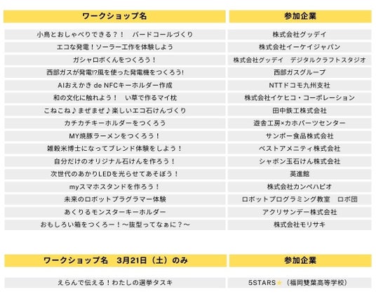 工作&ものづくり ワークショップ一覧